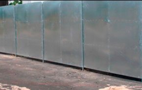 Os fechamentos metálicos são compostos por placas de 2.20m de altura por 2.20m de