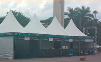 Tamanho: 20X16/18X16 com 02 camarins Octanorm, pé direito com 12 m de altura. -Temos também palcos com